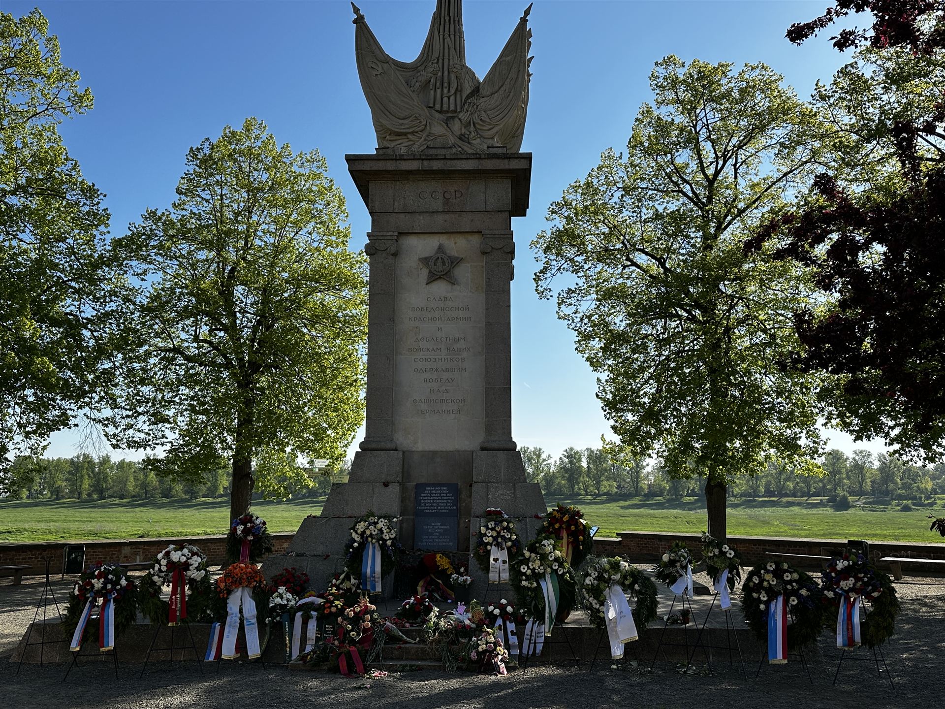 Bei den Protagonisten Bradley und Konew handelte es sich um die jeweiligen Spitzen-Oberbefehlshaber der US-Truppen (12. Army Group) und Roten Armee (1.Ukrainische Front), die jeweils über mehr als 1 Million Soldaten befehligten. Im Wesentlichen wurde in Lebusa der Sieg der Alliierten über Deutschland gefeiert, diniert, ein Konzert gegeben, Orden vergeben und Geschenke ausgetauscht – es gab ein Don-Kosaken Pferd für Omar Bradley und einen Willys-Jeep für Iwan Konew.