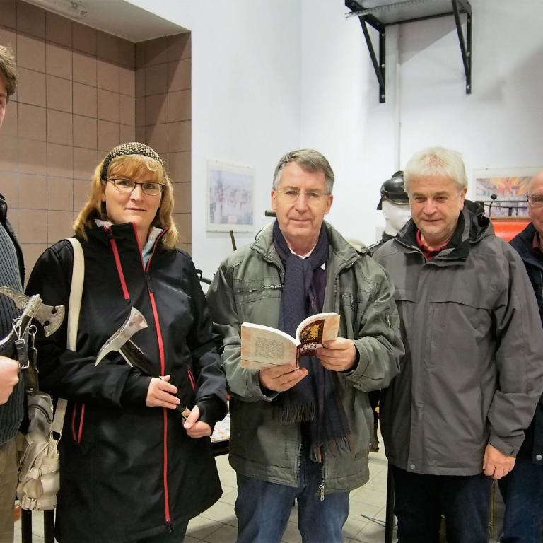 Das neueste Buch des Freundeskreises "Der Rote Hahn" wurde am 3.11.16 im Feuerwehrgerätehaus Schlieben präsentiert. Viele Interessenten nutzten diese Gelegenheit, sich mit diesem neuen, handschriftlich signiertem Buch einzudecken. Die Veranstaltung war durch die Schliebener Feuerwehr professionell vorbereitet worden, eine kleine Austellung der Schliebener Feuerwehr über historische Feuerwehrgegenstände sowie über entsprechende Symbole und Medaillen rundete die Präsentatin ab.