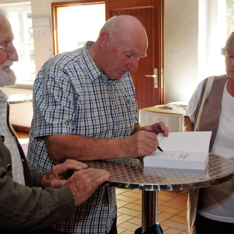 Großen Anteil an dem Gelingen der Veranstaltungen hatte der Ortsvorsteher, unser Mitglied des Freundeskreises, Lothar Lehmann. Lothar hat am Freitag den Freundeskreis zur Vorstellung der Ortschronik eingeladen, er selbst, sowie Gernot Richter und Dr. Peter Müller lasen Auszüge der Chronik vor über 60 interessierten Bürgern und Gästen in der Parkscheune Polzen.