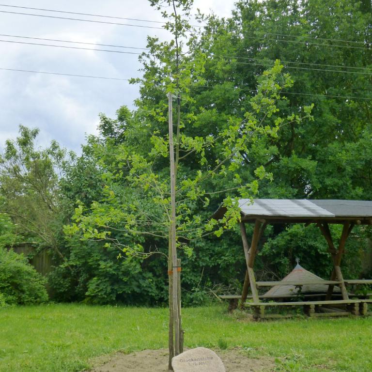 Unsere Glockeneiche ersetzt eine Eiche, welche wegen des schlechten Zustands (Verfault) im Jahr 2012 leider gefällt werden musste. Wir nennen diese von uns in die Erde gesetzte Eiche
