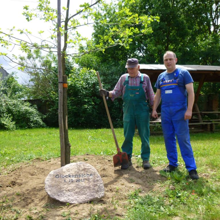 Unsere Glockeneiche ersetzt eine Eiche, welche wegen des schlechten Zustands (Verfault) im Jahr 2012 leider gefällt werden musste. Wir nennen diese von uns in die Erde gesetzte Eiche