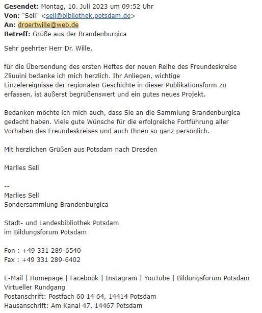 Wir wünschen den Mitgliedern des Freundeskreises Zliuuini für ihr weiteres Wirken viel Erfolg, Gesundheit und natürlich die Erhaltung ihres beispielgebenden Gemeinschaftsgeistes“.