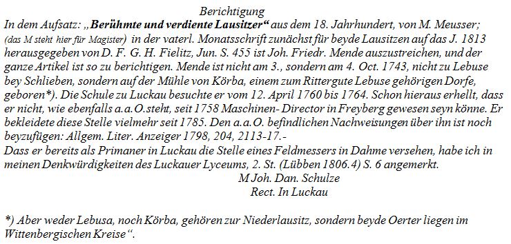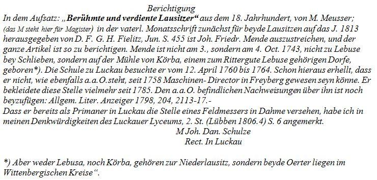 Kontaktausbau zu den Museen Luckau (Beitrag für Heimatkalender Luckau über „Mende in Luckau“)