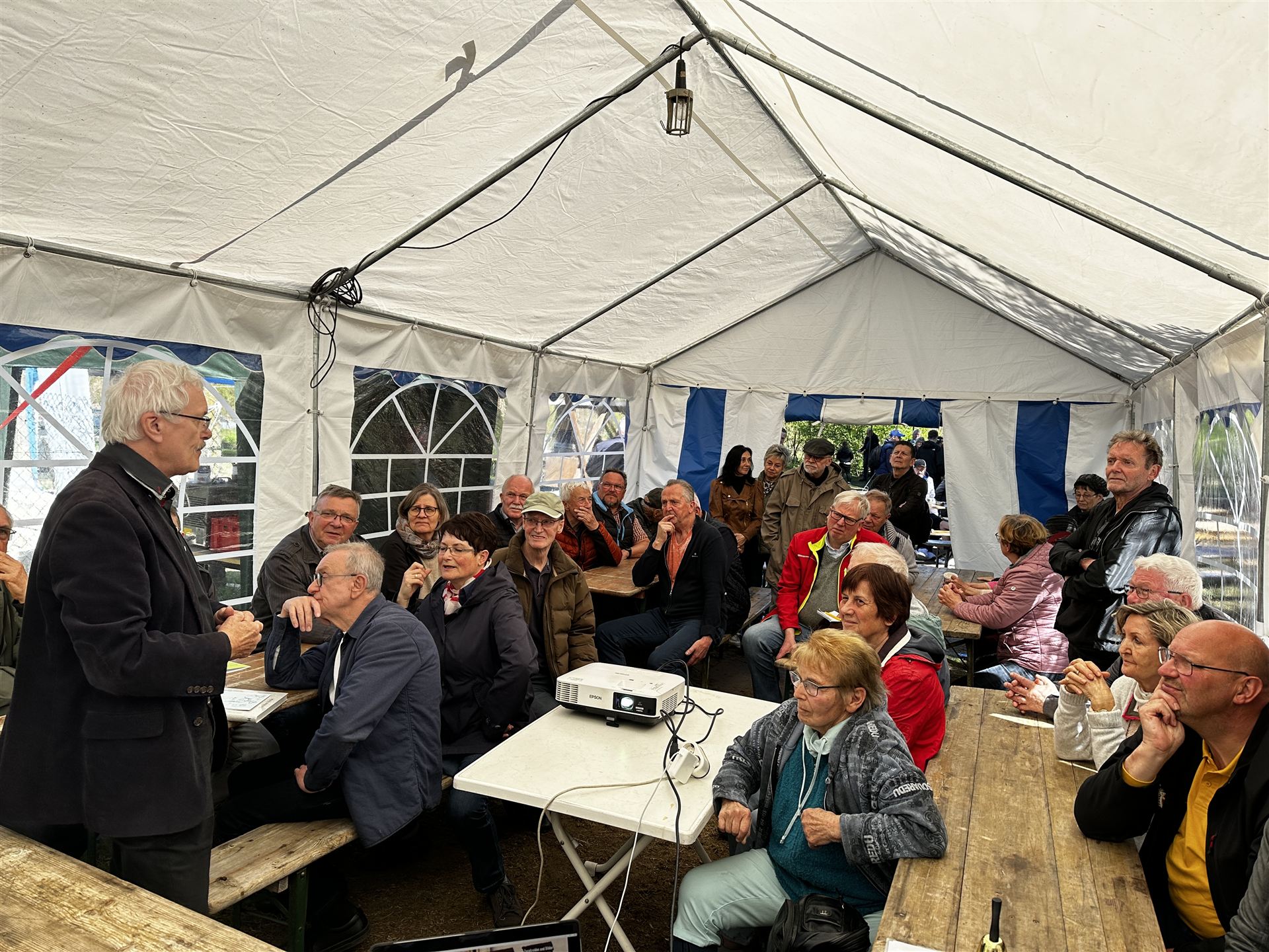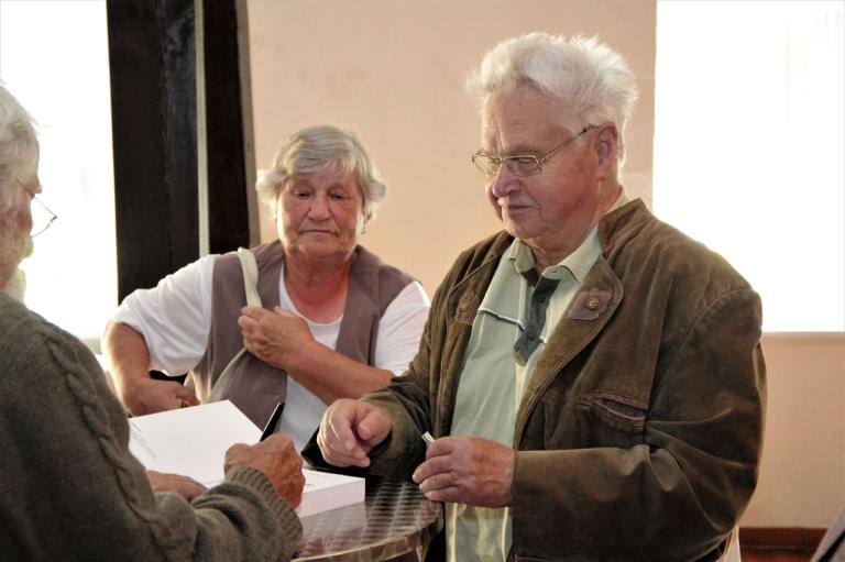 Anlässlich des diesjährigen Moienmarktes in Schlieben, präsentierte der Freundeskreis Zliuuini am Sonntag, 07.07.2024 sein neuestes Buch einem interessierten Publikum. Herr Dr. Gert Wille stellte das umfangreiche Buch des Freundeskreieses in gekonnt markigen und mit Anekdoten gewürztem Vortrag dem Publikum vor. Im Anschluss wurde das Buch zum Verkauf angeboten und die Autoren standen zum Gedankenaustausch bereit.