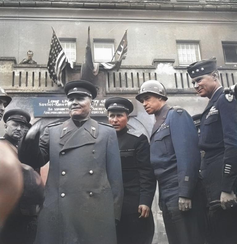 Bei den Protagonisten Bradley und Konew handelte es sich um die jeweiligen Spitzen-Oberbefehlshaber der US-Truppen (12. Army Group) und Roten Armee (1.Ukrainische Front), die jeweils über mehr als 1 Million Soldaten befehligten. Im Wesentlichen wurde in Lebusa der Sieg der Alliierten über Deutschland gefeiert, diniert, ein Konzert gegeben, Orden vergeben und Geschenke ausgetauscht – es gab ein Don-Kosaken Pferd für Omar Bradley und einen Willys-Jeep für Iwan Konew.