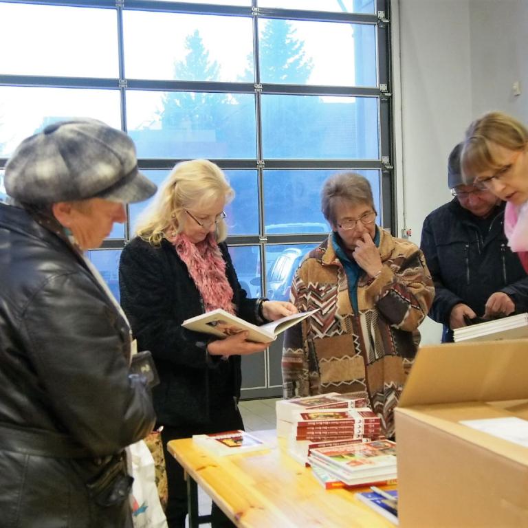 Auf den Fotos sind neben der Vorsitzenden Karola Wilde (ganz links), auch Christine Radens und Christine Neubert vom Heimatverein Schwarzenburg zu sehen. Gast war auch u.a. der bekannte Malitschkendorfer Holzschnitzer Gisbert Mönnich (rechts vor dem Fenster).