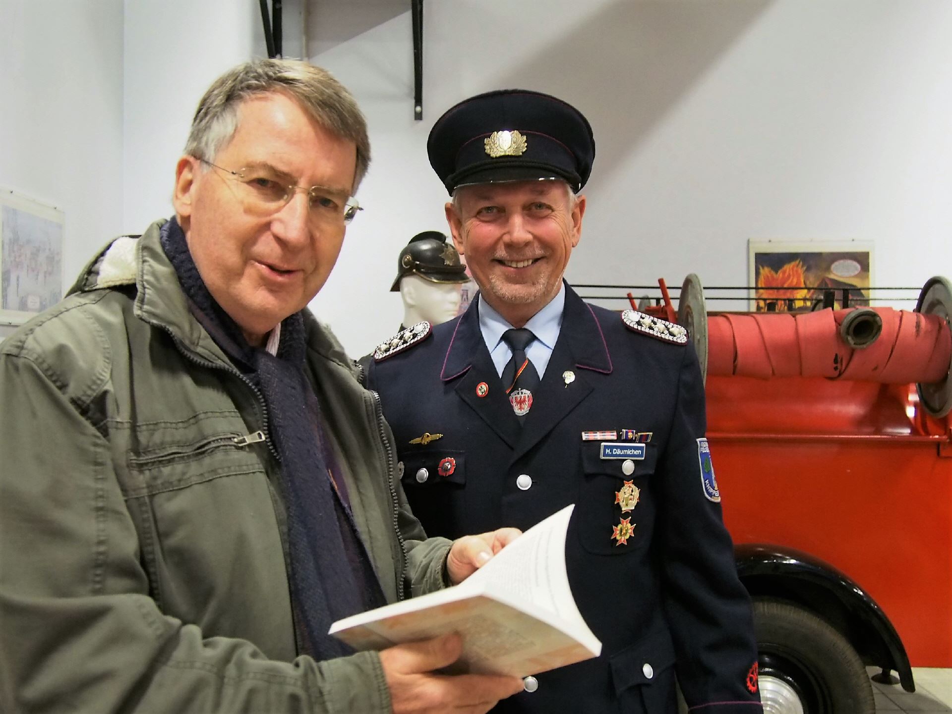 Das neueste Buch des Freundeskreises "Der Rote Hahn" wurde am 3.11.16 im Feuerwehrgerätehaus Schlieben präsentiert. Viele Interessenten nutzten diese Gelegenheit, sich mit diesem neuen, handschriftlich signiertem Buch einzudecken. Die Veranstaltung war durch die Schliebener Feuerwehr professionell vorbereitet worden, eine kleine Austellung der Schliebener Feuerwehr über historische Feuerwehrgegenstände sowie über entsprechende Symbole und Medaillen rundete die Präsentatin ab.